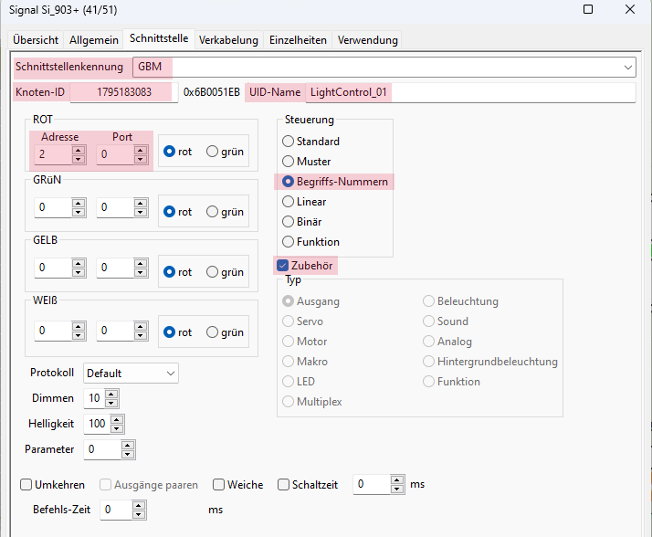 - Als Adresse wird nun bei ROT die Accessory-Nummer + 1 eingetragen.