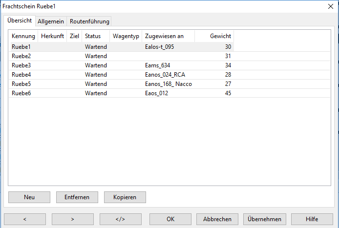 Es wird ein Frachtschein mit Kennung "NEW" hinzugefügt, die dann auf Registerkarte "Allgemein" gändert und um die Abfertigungs-Daten ergänzt werden kann.