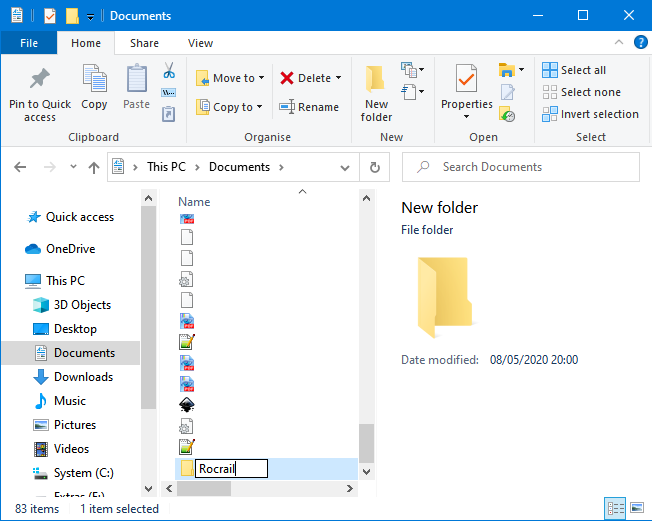 RocraildeDocumentsvers l'emplacement désiré sur l'ordinateur, par exemple un deuxième disque interne. - Après le déplacement, exécuter le fichier